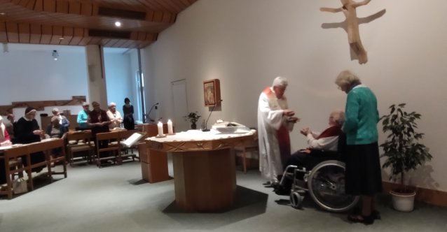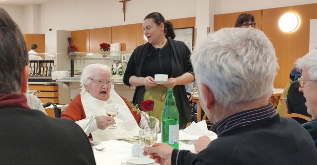 Die liebevoll gestaltete Feier wurde vom Seniorenbetreuungsteam und Bernadette Schilling von den Sozial Pastoralen Diensten vorbereitet. In einer liebevoll gestalteten Power Point Präsentation von Seniorenbetreuer Fabio Testasecco blickte die Feiergemeinschaft auf das bewegte Leben von Sr. Mathilde zurück. Erinnerungen an ihre Berufung, ihren Dienst als Schwester und ihr stilles Wirken für viele Menschen begleiteten durch diesen besonderen Nachmittag.