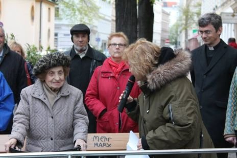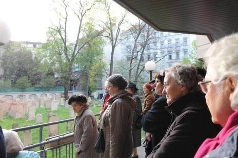 Start war am jüdischen Friedhof Seegasse 11, danach zog die Gruppe zur evangelischen Messiaskapelle, wo Pfarrer Geschl an Menschen erinnerte, die in der Seegasse 16 in der schwedischen Mission Juden zur Ausreise verhalfen.