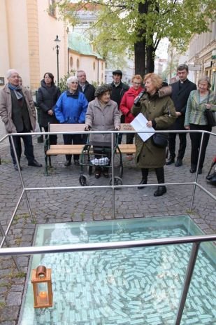 Der Weg führte weiter zu den Schlüsseln des Gedenkens in der Servitengasse, wo Bezirksvorsteherin Martina Malyar zwei Frauen würdigte, die den Gedenkweg ins Leben gerufen hatten und auch beim 15. Gedenkweg mit dabei waren.