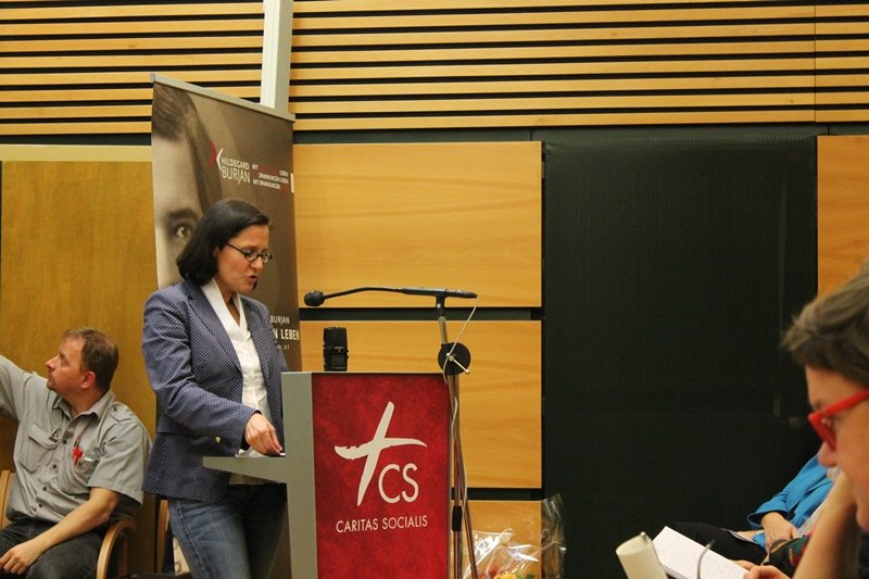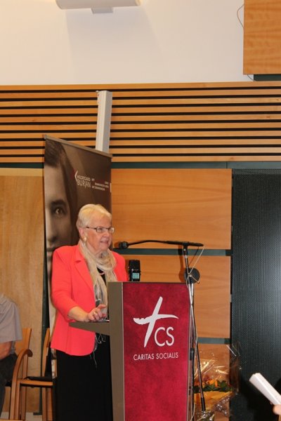 Prof. Ingeborg Schödl, Vorsitzende des Hildegard Burjan Forums gab in ihrer Begrüßung einen kurzen historischen Rückblick auf die Gründung des CS Haus für Mutter und Kind.