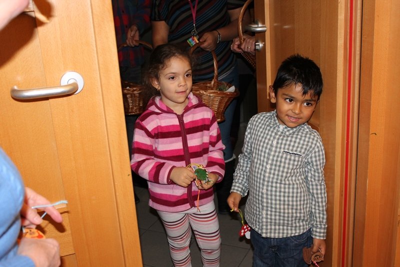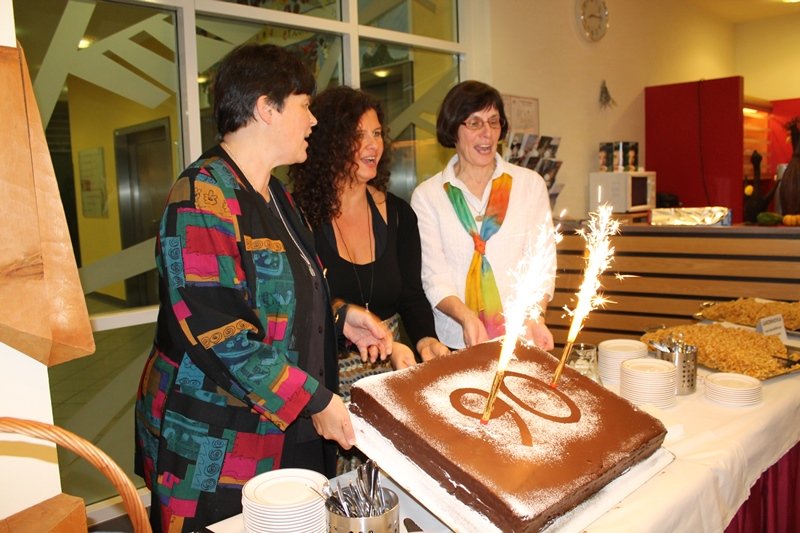 Beim Ausgang teilten Kinder des CS Haus für Mutter und Kind selbst bemalte Anhänger aus. Beim anschließenden Imbiss wurde die Geburtstagstorte angeschnitten.