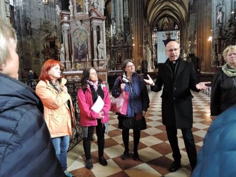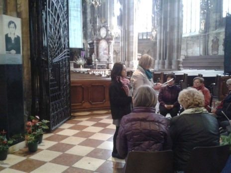 Besuch einer Gruppe der kfb Garsten im Stephansdom bei der Hildegard Burjan Stele