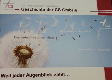 Eduard Spörk und Sr. Karin Weiler erzählten die Geschichte der CS GmbHs. Viele Erfahrungen der Schwesterngemeinschaft auf dem Gebiet der Altenpflegeund -betreuung sind in die CS GmbHs eingeflossen. Wichtig war es, die Werke im Sinne des Gründungsauftrags in die Zukunft zu führen. Das ist durch Menschen wie Eduard Spörk und durch die Zusammenarbeit mit der Stadt Wien gelungen. Vizebürgermeister Hans Mayr spielte dabei eine wichtige Rolle. Sr. Karin Weiler stellte die Leitbildarbeit mit den MitarbeiterInnen der CS Caritas Socialis dar - ein Erfolgsfaktor für die Entwicklung der CS Caritas Socialis GmbHs von Beginn an.