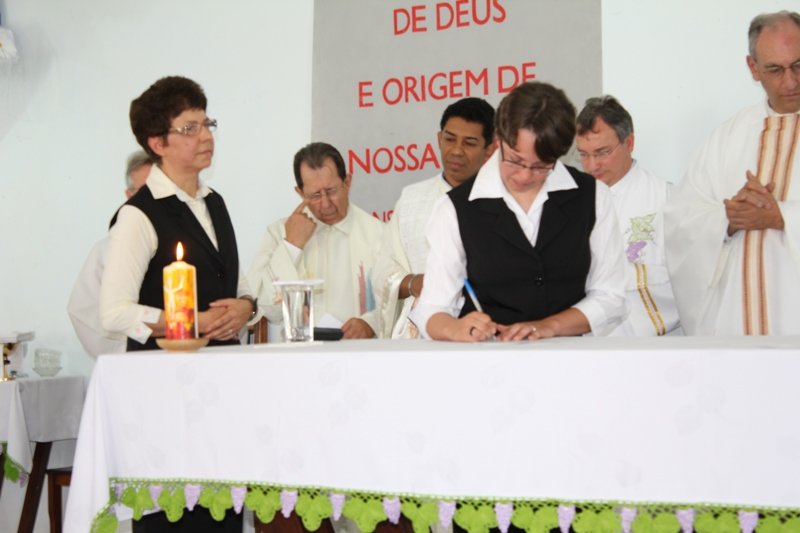 Sr. Karen Danielle Klacek feierte am 26. 10. 2014 in ihrer Heimatpfarre Xarquinho in Guarapuava ihre definitive Lebensweihe. In Vertretung der Generalleiterin nahm Sr. Laura Marcelino, die Verantwortliche für Brasilien, die definitive Lebensweihe entgegen.