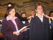 Viele MitarbeiterInnen beteiligten sich an der Gestaltung. Der Wunsch, der sich im Psalmwort aus Ps 121 ausdrückt, wurde Sr. Ursula auf vielfältige Weise zugesagt und zugesungen. Es kamen darin Dankbarkeit und auch Freude darüber, dass Sr. Ursula nach einer Zeit der Erholung wieder ehrenamtlich in den Sozial Pastoralen Diensten am Rennweg tätig sein wird, zum Ausdruck. Sr. Ursula wurde symbolisch aus der Kapelle (ihrer bisherigen Tätigkeit) hinaus und wieder in die ehrenamtliche Tätigkeit hinein begleitet. Ein Chor aus MitarbeiterInnen sang dazu eine eigens von Musiktherapeut Mag. Martin Seidl für Sr. Ursula komponierte Vertonung des Psalms 121. Die sozial pastoralen KollegInnen sprachen Segensworte für Sr. Ursula.