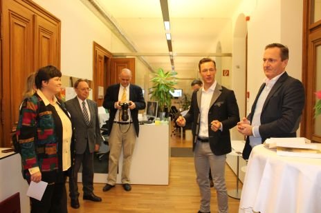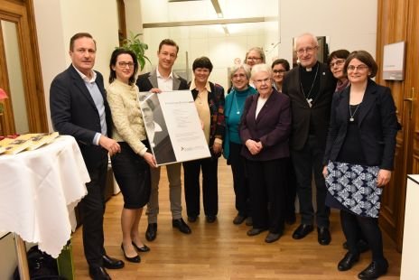 Generalleiterin Sr. Susanne Krendelsberger CS überreicht Gedenktafel der ersten weiblichen christlichsozialen Politikerin an ÖVP-Rathausklub