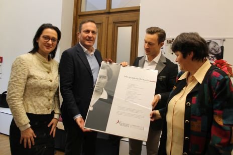 Auf Initiative der Gemeinderätin Dr. Gudrun Kugler überreichte Generalleiterin Sr. Susanne Krendelsberger CS dem ÖVP Rathausklub im Beisein von Weihbischof Scharl, Vertreterinnen der CS Schwesterngemeinschaft, der CS Caritas Socialis Privatstiftung, der Burjan Biografin Prof. ingeborg Schödl und von bezirksvorsteher a.D. Heinz Gerstbach am Montag, 5. 12. 2016 eine Gedenktafel, die im ÖVP Rathausklub an Hildegard Burjan erinnern wird.