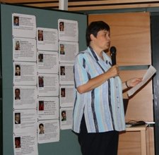 Sr. Susanne zeigte im Festsaal die bereits für den Tag der Bekanntgabe des Termins der Seligsprechung vorbereitete Homepage über Hildegard Burjan. Besonderes Interesse erweckten die vielen von Persönlichkeiten aus Politik, Kirche und CS gesammelten Statements über Hildegard Burjan und über das Motto der Seligsprechung.