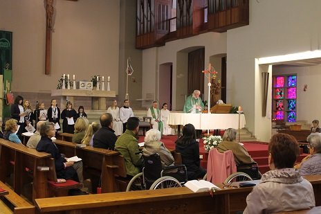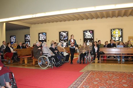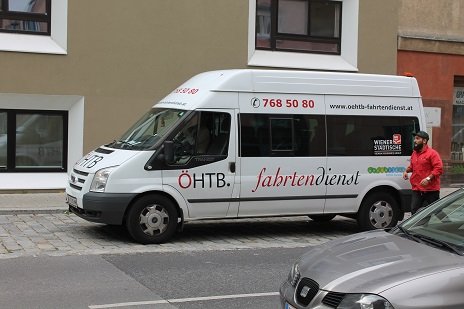Ehrenamtliche DemenzwegbegleiterInnen und der Fahrtendienst des ÖHTB, der eine Gratisfahrt spendete, halfen mit, dass auch Menschen mit Mobililtätseinschränkung zum Gottesdienst kommen konnten.