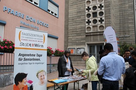 Am Marktplatz informierten die NetzwerkpartnerInnen des Netzwerks demenzfreundlicher 3. Bezirk mit Hilfe des Demenz Trolleys. MitarbeiterInnen des Fonds Soziales Wien, der Caritas, der CS Caritas Socialis, der Seniorenpastoral der Erzdiözese Wien und von Alzheimer Austria standen zum Gespräch bereit. Alle genossen die Gastfreundschaft der Pfarre Neuerdberg, die zum Pfarrcafe einlud.