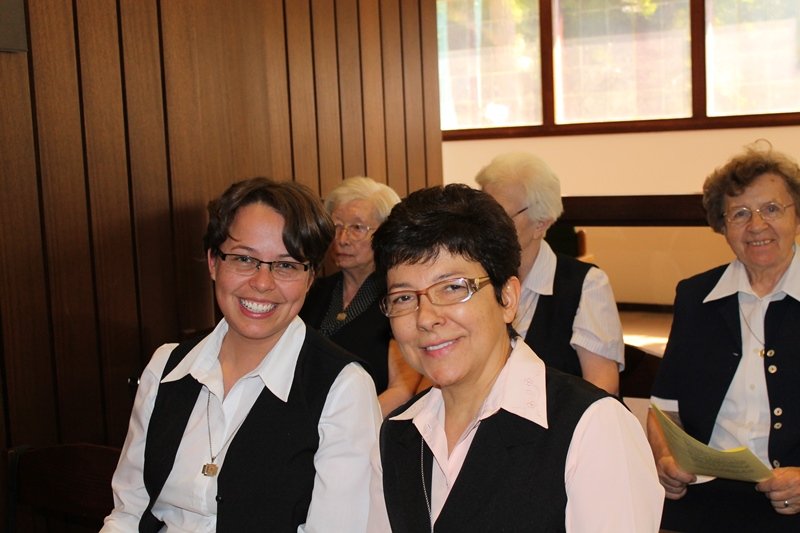 Die Familien der Jubelschwestern, viele Freunde und Weggefährten waren gekommen um mit Schwestern und Mitgliedern des Säkularkreises das Fest zu feiern. Sr. Laura Marcelino und Sr. Karen D. Klaczek sangen zu Ehren von Sr. Stefana ein brasilianisches Berufungslied. Sr. Stefana war lange Zeit in Brasilien eingesetzt.