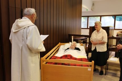 CS Schwestern, Mitglieder des Säkularkreises der Caritas Socialis, MitarbeiterInnen, Freunde der CS und Verwandte von Sr. Zita Nussbaumer feierten den Festgottesdienst zum Herz Jesu Fest heuer erstmals in der barrierefrei umgestalteten Kapelle in Kalksburg. Sr. Zita Nussbaumer, die ihr 60jähriges Jubiläum beging, konnte aufgrund dieser Umgestaltung mit dem Pflegebett in der Kapelle mitfeiern. Ihre Schwester und ihr Schwager waren aus Südtirol zum Fest gekommen. Prof. Gisbert Greshake sprach in seiner Festpredigt von der Zärtlichkeit Gottes, die wir an die Menschen, denen wir begegnen, weiter schenken können.