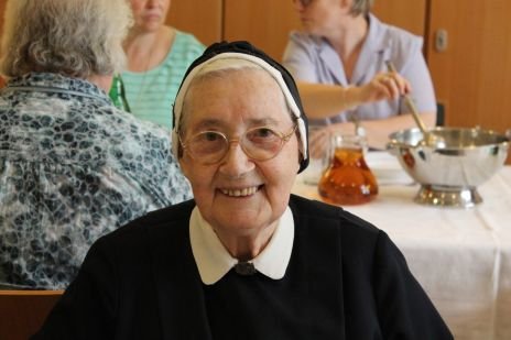 Wir feiern die Jubiläen mit Sr. Gertraud Rabl, Sr. Hedwig Haslehner, Sr. Maria Angela Faast (60 Jahre), Sr. Amata Gallmetzer, Sr. Celine Guadagnini, Sr. Emanuela Faiman, Sr. Egberta Nimmrichter, Sr. Konrada Puchmair (65 Jahre), Sr. Sieglinde Walchshofer (70 Jahre - sie konnte nicht in die Pramergasse kommen), Sr. Maria Zemmer, Sr. Martina Theiner, Sr. Ulrike Gorfer (50 Jahre) und Sr. Elisabeth Löffler (25 Jahre).