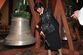 Nach der Glockenweihe schlug Dompropst Hubertus Zomack die größere der beiden Glocken, die Hedwigs Glocke an. Als sie verklungen war, reichte er den Klöppel an Sr. Susanne Krendelsberger weiter. Sie ließ die Hildegard Burjan Glocke erklingen.