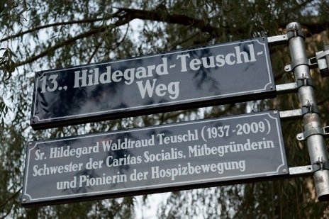 Ein Weg in Wien Hietzing wurde am 10. 10. 2014 nach Sr. Hildegard Teuschl CS, Hospizpionierin und Schwester der Caritas Socialis, benannt.