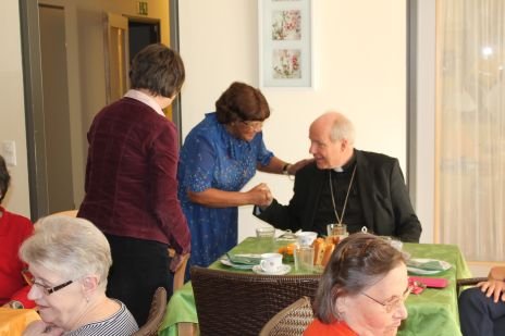 Kardinal Schönborn unterhielt sich bei der Nachmittagsjause mit Frau K., die ihm von ihrem 60jährigen Einsatz als Organistin erzählte. Mit Frau A., die aus Brasilien stammt, konnte er einige Worte in Portugiesisch wechseln, was ihr große Freude bereitete.