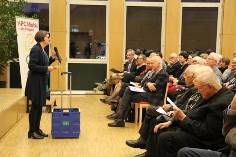 Im Rahmen des Abends stellte Christine Hintermayer, CS Betreuung zu Hause, das Projekt HPC Mobil (Hospizkultur und Palliative Care in der Mobilen Pflege- und Betreuung) vor, das vom Dachverand Hospiz Österreich und vier Trägern durchgeführt wurde, um die Komeptenz und Haltung der MitarbeiterInnen, aber auch Strukturen und Abläufe in den Einrichtungen für die Begleitung am Lebensende zu Hause weiter zu entwickeln. Das Pilotprojekt wird nun österreichweit ausgerollt.