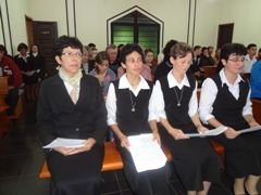 Nach der Ausbildungszeit in der Schwesterngemeinschaft Caritas Socialis, in der sie von Sr. Clotilde R. Bonfim begleitet wurden, werden sie am Sonntag, 10. 2. 2013 um 10:00 Uhr (Ortszeit) in der Kapelle der Franziskaner in Guarapuava/Brasilien ihre Lebensweihe feiern. Sr. Clotilde R. Bonfim, Verantwortliche für die Gemeinschaft in Brasilien wird in Vertretung von Sr. Maria Judith Tappeiner, Generalleiterin, die Weihe entgegen nehmen.