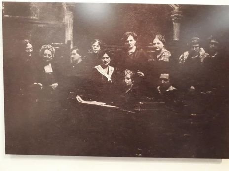 Neue Einblicke zu Hildegard Burjan und vielfältige Informationen bietet die Sonderausstellung im Wien Museum "Die erkämpfte Republik" Darunter sind Fotos zum Thema "100 Jahre Frauenwahlrecht" zu sehen. Ein Foto zeigt Hildegard Burjan als eine der ersten Gemeinderätinnen im Wiener Rathaus. Eine Zeitung zeigt Porträtfotos der ersten Abgeordneten zum Parlament - darunter Hildegard Burjan.