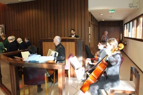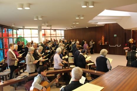In der bis auf den letzten Platz gefüllten Kapelle des Pflege- und Sozialzentrums Kalksburg feierten viele WeggefährtInnen Eucharistie für Sr. Aurelia. Als Konzelebranten feierten Georg Henschling, Georg Stockert und Helmut Schüller, die wie viele Priester lange Freundschaft mit Sr. Aurelia schon seit der Zeit im Priesterseminar verband, mit P. Josef Denkmayr den Gottesdienst. Sr. Serafine Ogrisek las einen Text von Augustinus vor, der Sr. Aurelia wichtig war. Im Rahmen des Gottesdienstes, der von Familie und jungen Freunden und Sr. Sieglinde Ruthner musikalisch gestaltet wurde, wurde Sr. Aurelia´s Lieblingslied "Freunde, dass der Mandelzweig wieder Blüten treibt, ist das nicht ein Fingerzeig, dass die Liebe bleibt" gesungen.