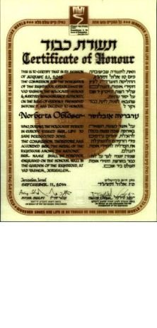 Yad Vashem ehrte Sr. Norberta Oblöser CS als Gerechte unter den Völkern